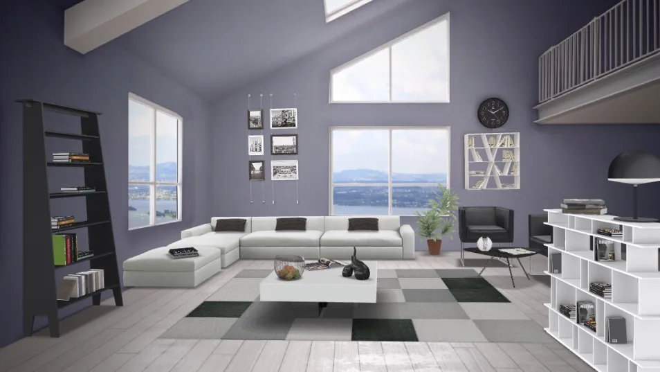 A simplistic modern black and white living room