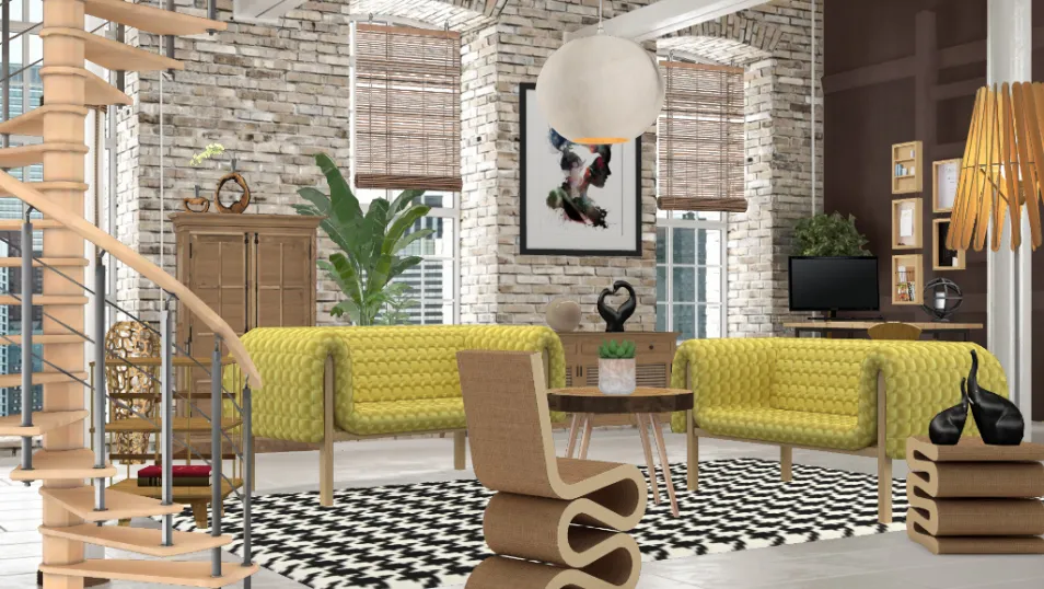 Natural warm living room with little Space for work .