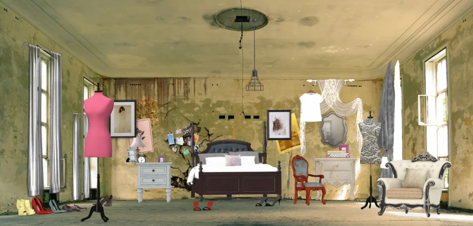I'm learn to draw attention to the furniture by putting and in a very old and decrepit room