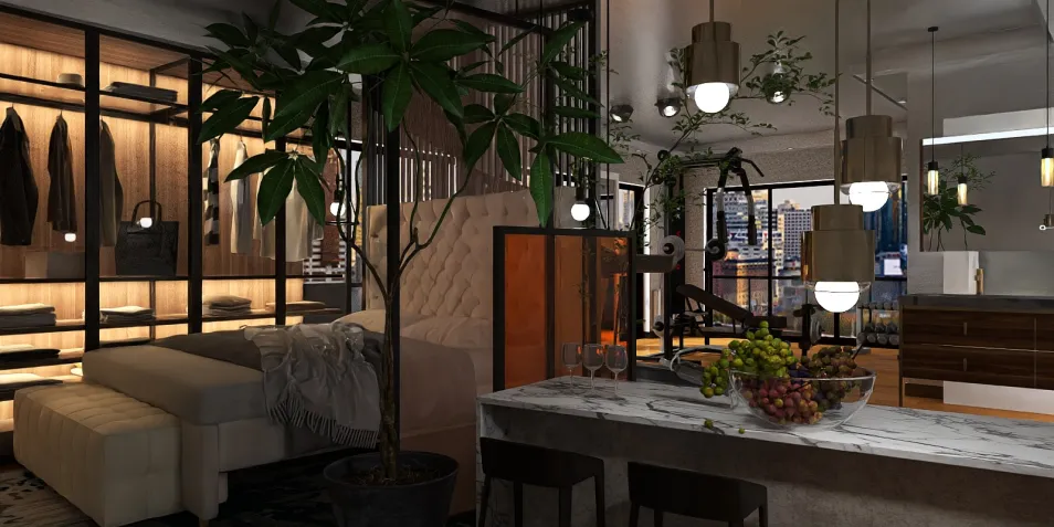 gym, bedroom and dining room studio