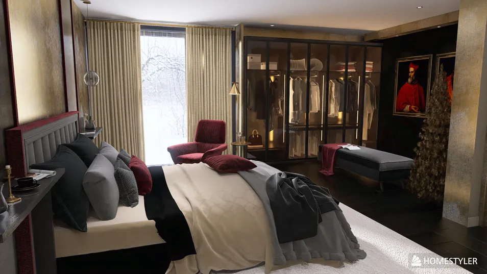 A bold home of shimmering golds and blacks dressed for the festive season throughout it rooms with splashes of red and crimson. I'd like to take this opportunity to wish everyone celebrating this holiday a joyous safe season.