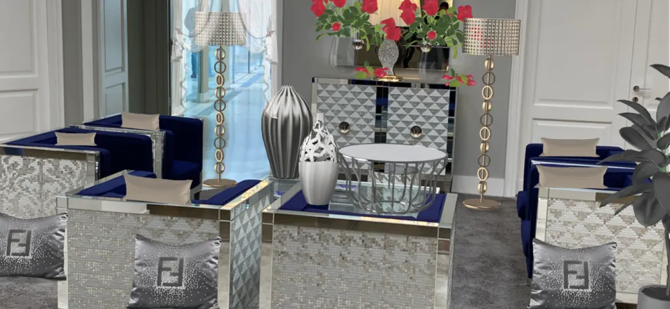 Materiali di pregio per ambienti lussuosi nell’iconica Dubai, polo internazionale del business. Oro, argento e luccichii sono predominanti tra tessuti di seta e materiali di assoluto elevato standard e pregio.