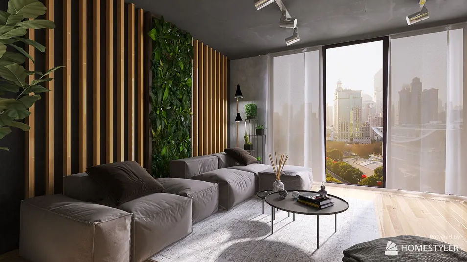 A small living room in eco style. The interior was designed for a family of 3 people. The family loves flowers and plants very much, so they chose the eco style. Floristry is their hobby.