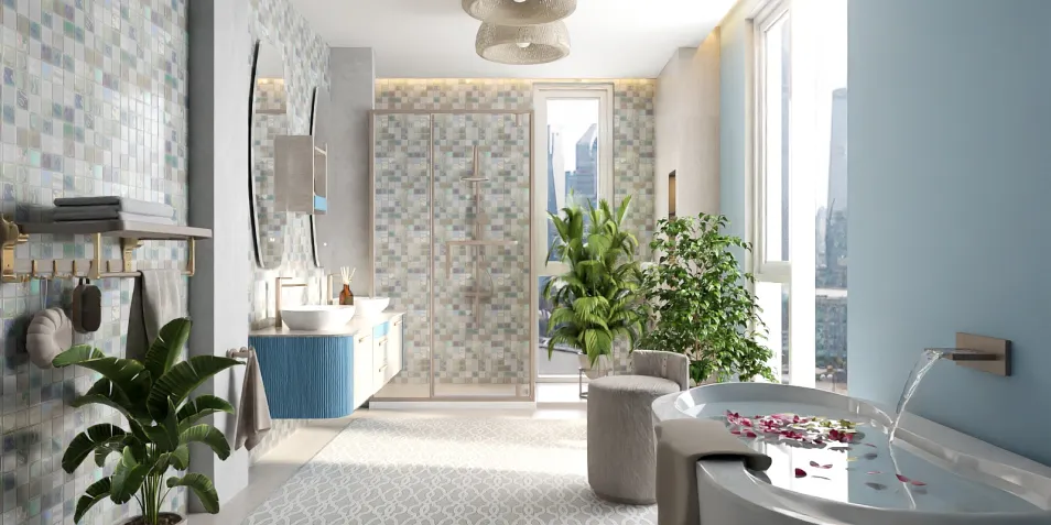 In einem Badezimmer, wo Fliesen wie Erinnerungen an vergangene Städte blitzen, fließt Wasser, das die Zeit selbst reflektiert. Pflanzen, die Geschichten erzählen, und das Licht, das durch transparente Wände tanzt, laden ein, die Grenzen des Gewöhnlichen zu überschreiten.