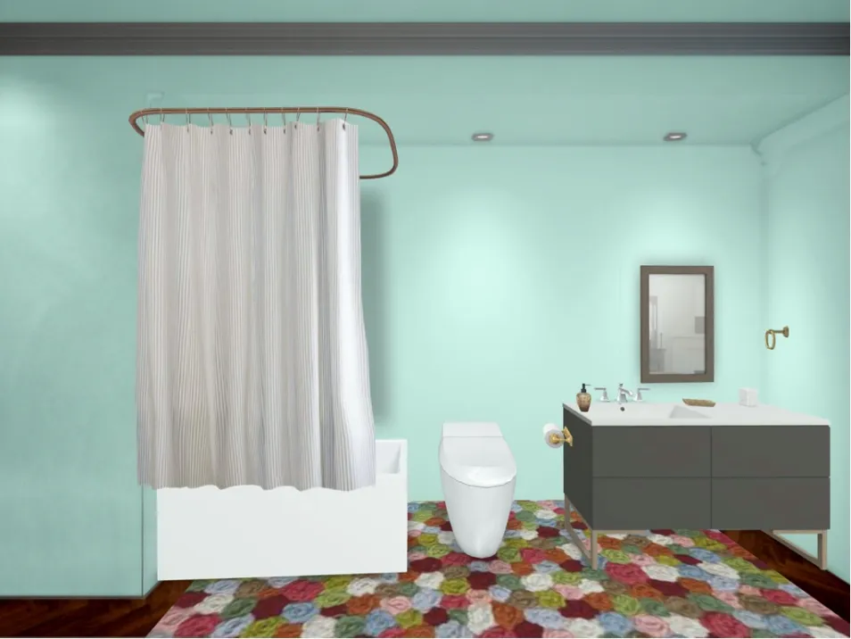 This luxurious bathroom has a patterned wood floor with a colorful rug to make it stand out. There is a bath, toilet, and vanity as well. There weren’t any towels to put on the towel rack, so it is by itself. I was slightly disappointed with this game, considering it is so much better on the online version.
