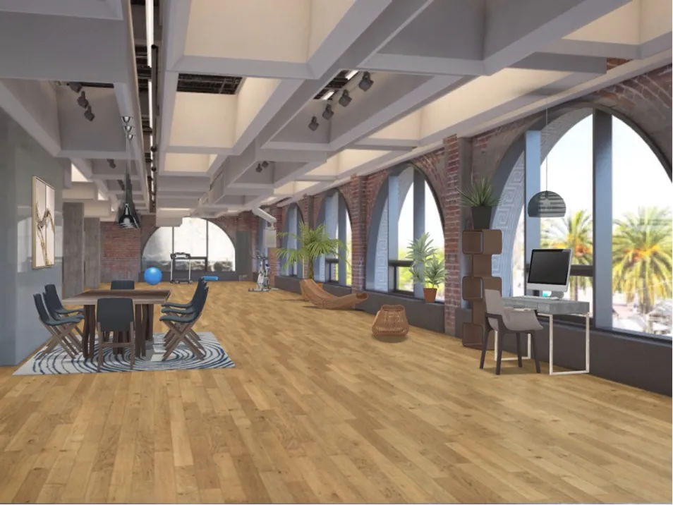 Features -dining room -office desk -chill zone -home gym