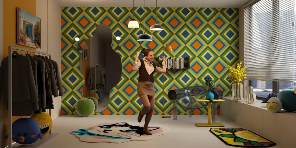 from now my dream when I get married to have a house full of colours (colourful) many pop colours together and to have a random style or geographical style.. so I decided to make a room with colours I love them together (orange yellow blue green) and make it little like a girly room 🔥 I hope guys you like it 😻🔥
