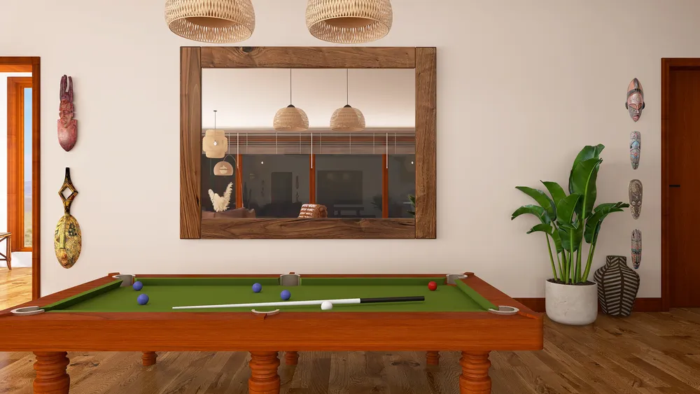 Inspired by the surrounding natural environment, this African safari lodge uses neutral colours, natural materials and animal-print wallpapers in its design. The lodge is comprised of two double bedrooms, a balcony with barbecue facilities and a large open plan living, kitchen and dining area, making it ideal for a double-date vacation or an exotic getaway for friends.