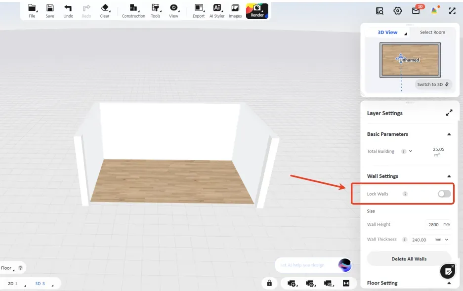 Please check if you have locked the walls?